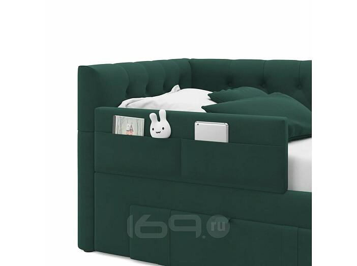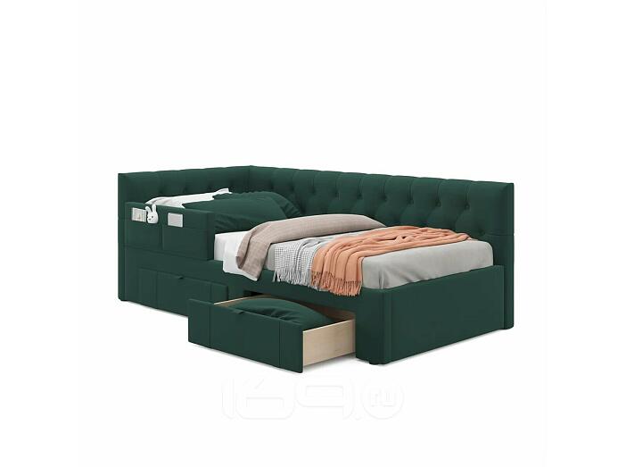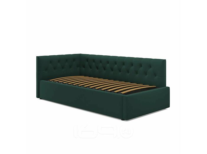 Кровать Afelia с матрасом велюр изумруд без П/М 900x2000, изголовье мягкое