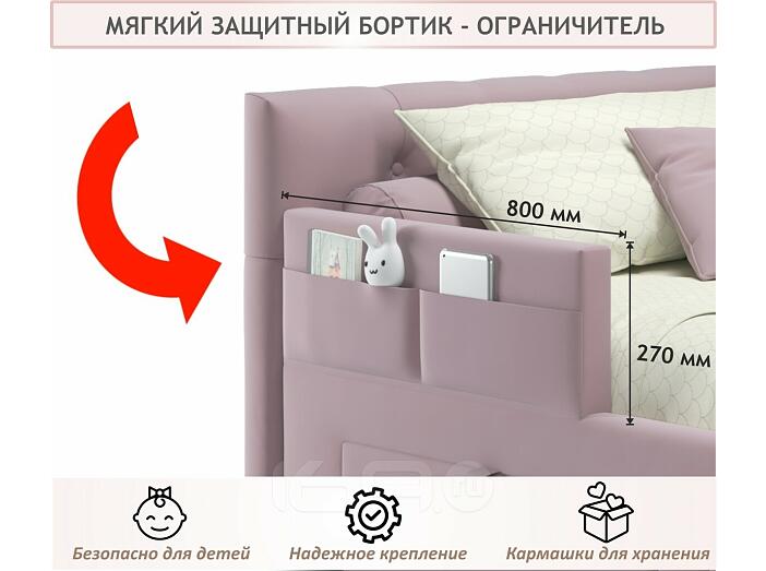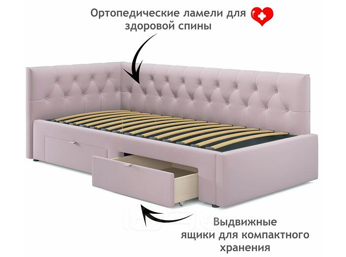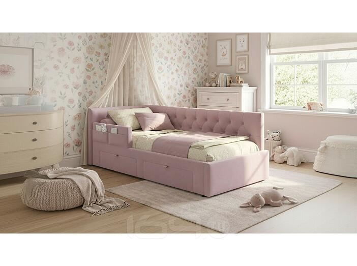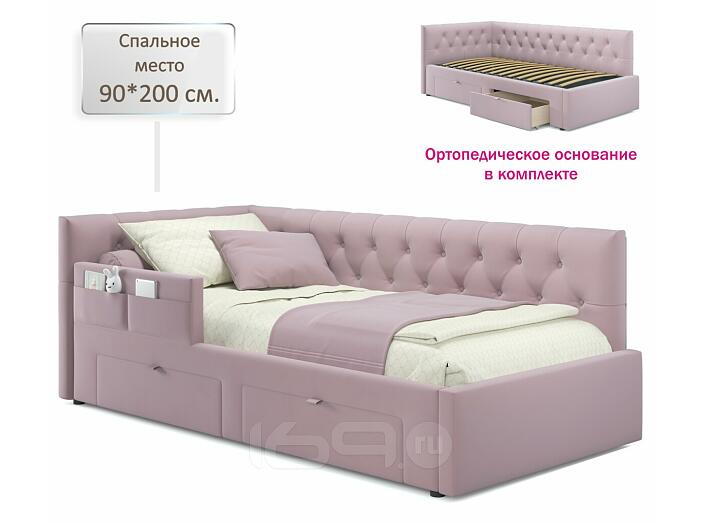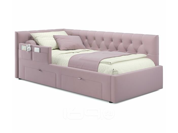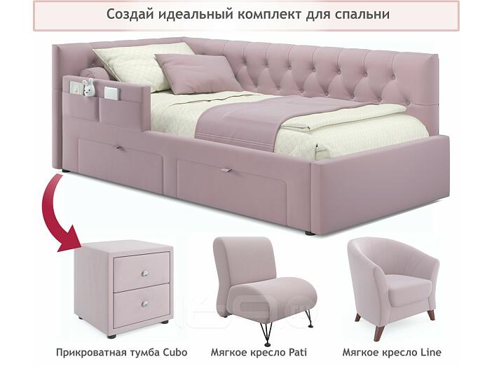 Кровать Afelia с матрасом велюр лиловый без П/М 900x2000, изголовье мягкое