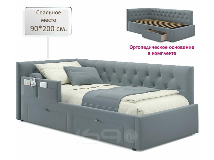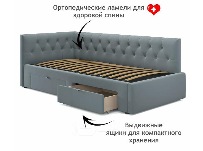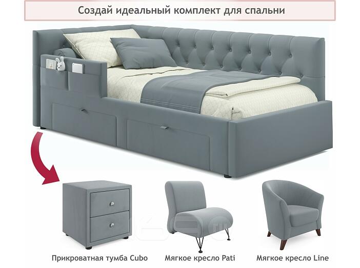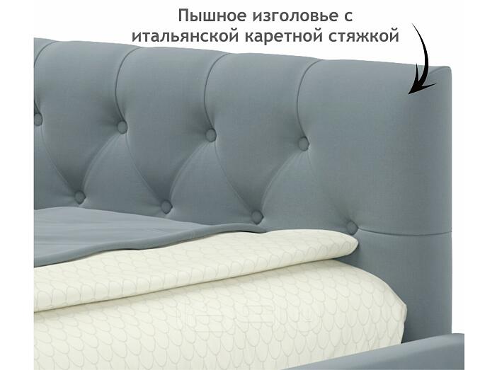 Кровать Afelia с матрасом велюр серый без П/М 900x2000, изголовье мягкое