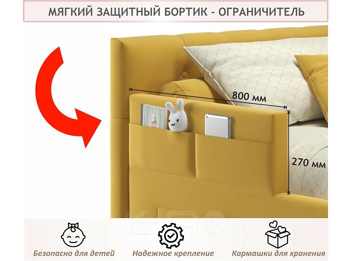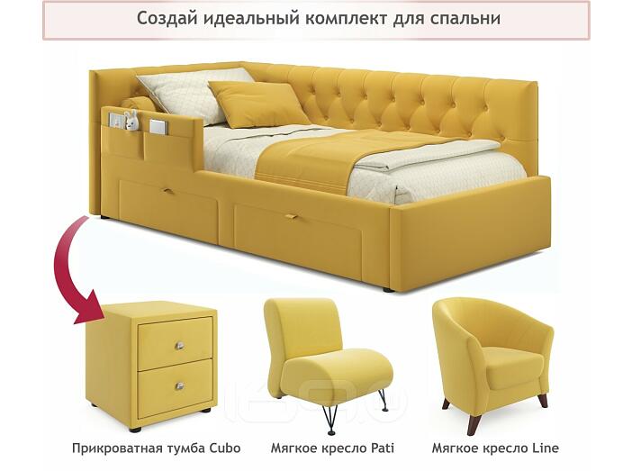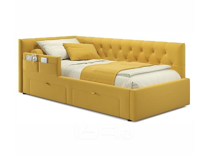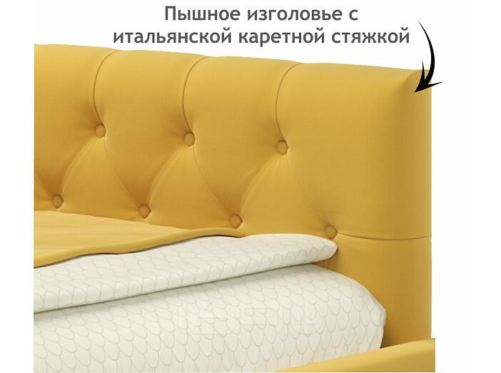 Кровать Afelia с матрасом велюр желтый без П/М 900x2000, изголовье мягкое