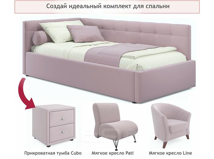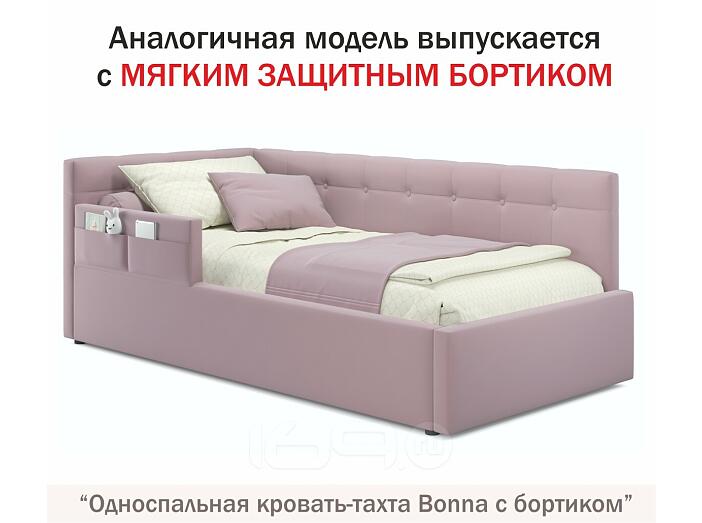 Кровать Bonna с матрасом велюр лиловый без П/М 900x2000, ортопедическое основание, изголовье мягкое