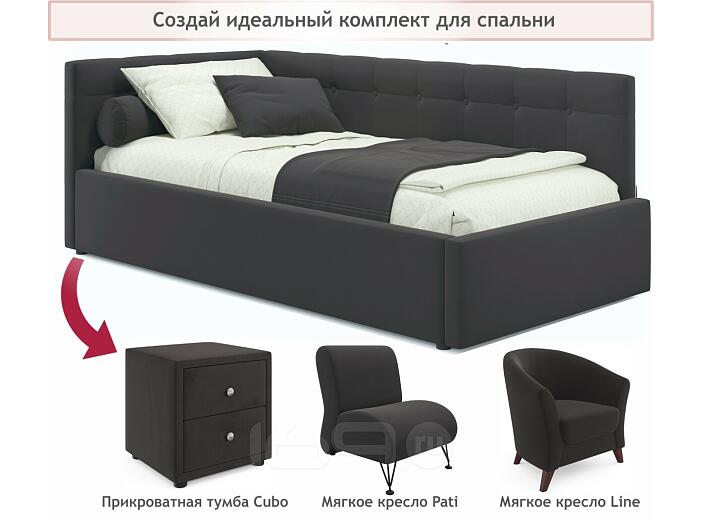Кровать Bonna с матрасом велюр шоколадный без П/М 900x2000, ортопедическое основание, изголовье мягкое