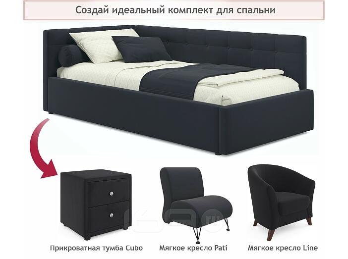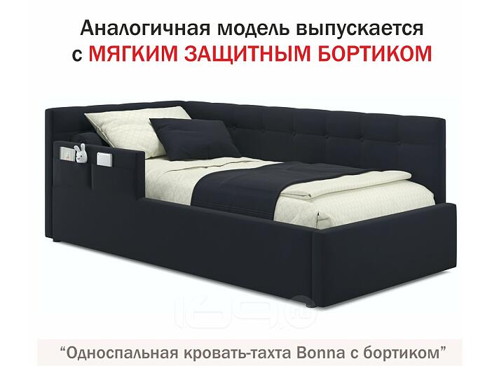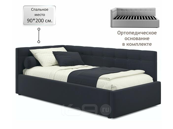 Кровать Bonna с матрасом велюр черный без П/М 900x2000, ортопедическое основание, изголовье мягкое
