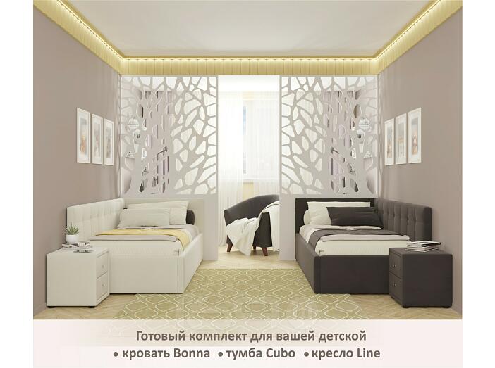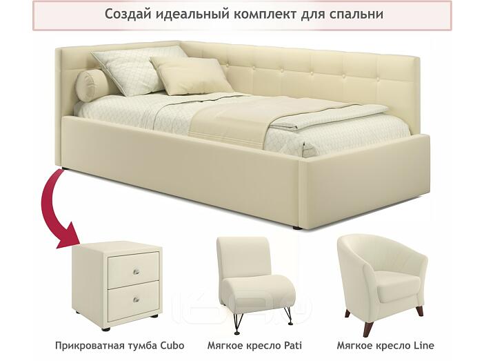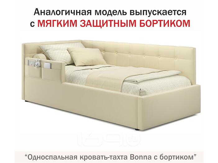 Кровать Bonna с матрасом велюр бежевый С П/М 900x2000, ортопедическое основание, изголовье мягкое