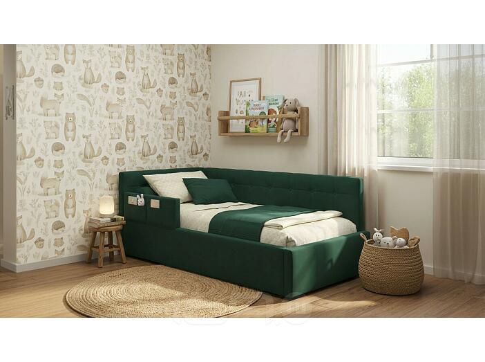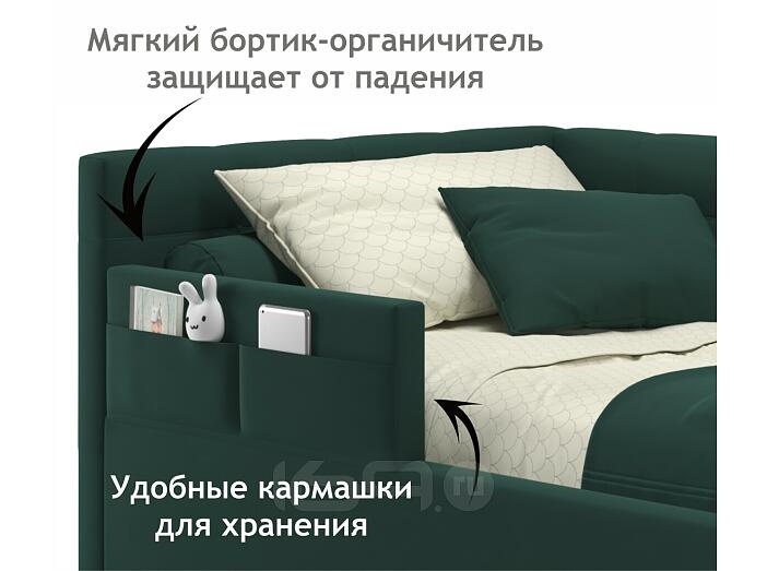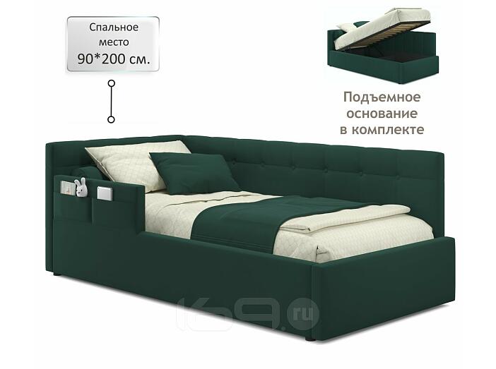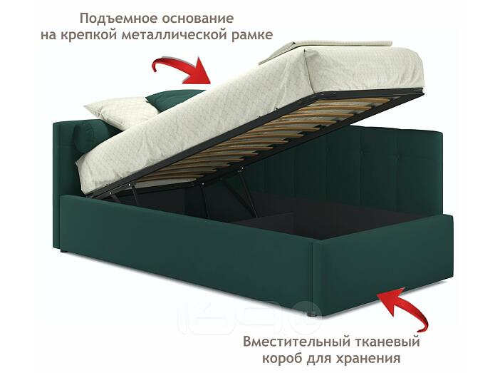 Кровать Bonna с матрасом велюр изумруд С П/М 900x2000, ортопедическое основание, изголовье мягкое