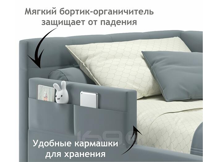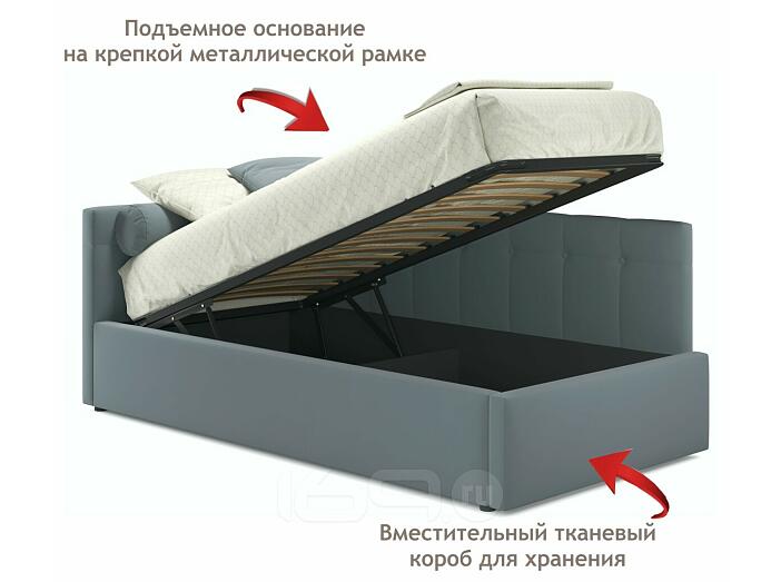 Кровать Bonna с матрасом велюр серый С П/М 900x2000, ортопедическое основание, изголовье мягкое