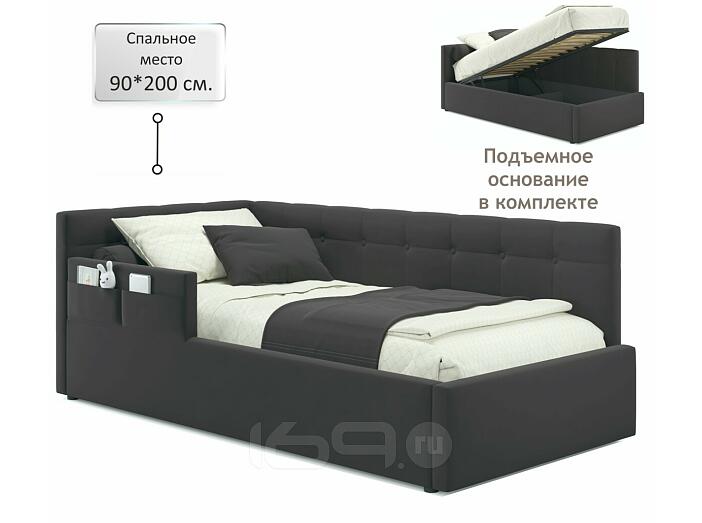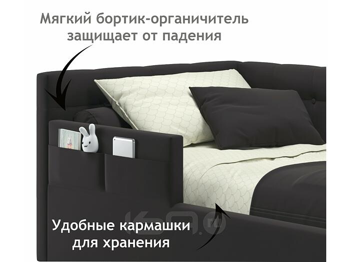 Кровать Bonna с матрасом велюр шоколад С П/М 900x2000, ортопедическое основание, изголовье мягкое