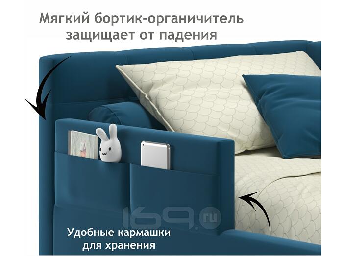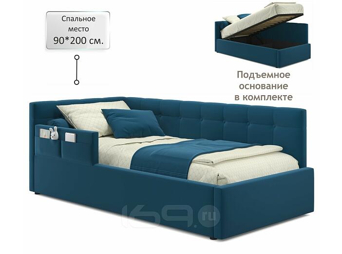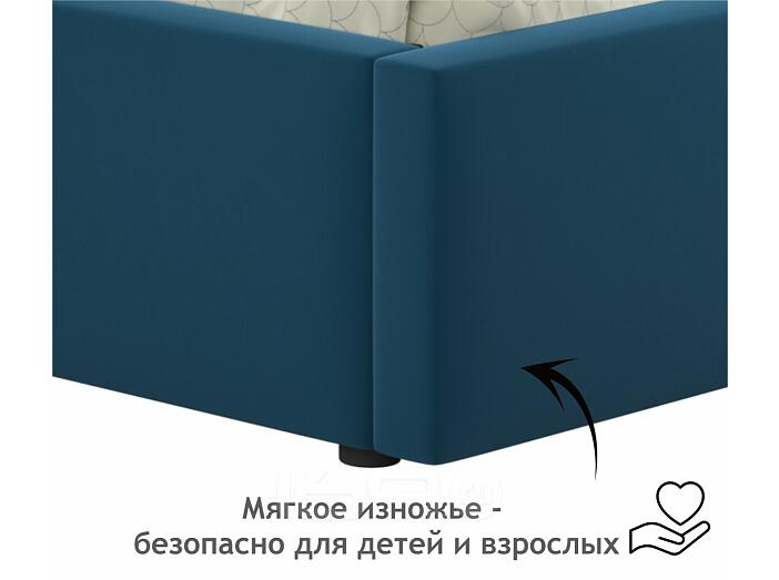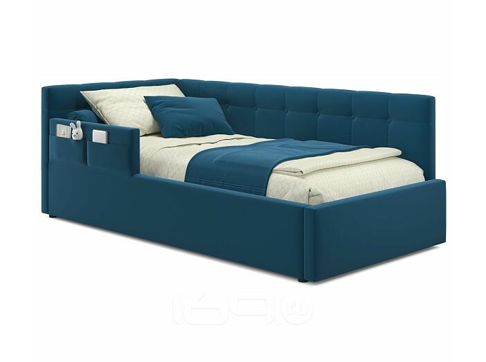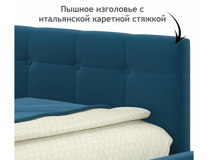 Кровать Bonna с матрасом велюр синий С П/М 900x2000, ортопедическое основание, изголовье мягкое