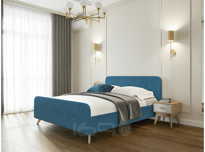 Кровать Сиерра велюр аура голубой 1400x2000, изголовье мягкое