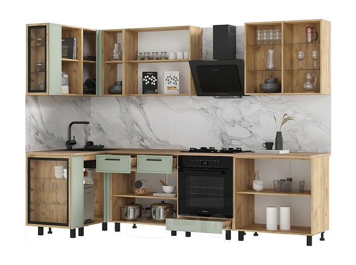 Кухонный гарнитур Бьянка Олива софт/Дуб Крафт 2164x2800/1200x600 (Дуб вотан)