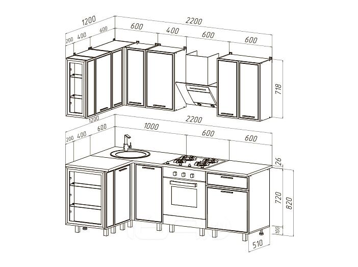 Верхние модули:ШВУП600 (718) - 60 х 60 х 71.8 см - 1 шт.