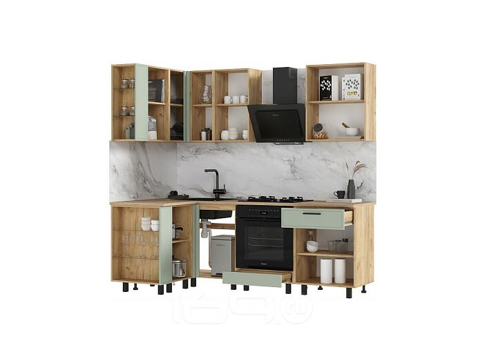 Кухонный гарнитур Бьянка Олива софт/Дуб Крафт 2164x2200/1200x600 (Дуб вотан)