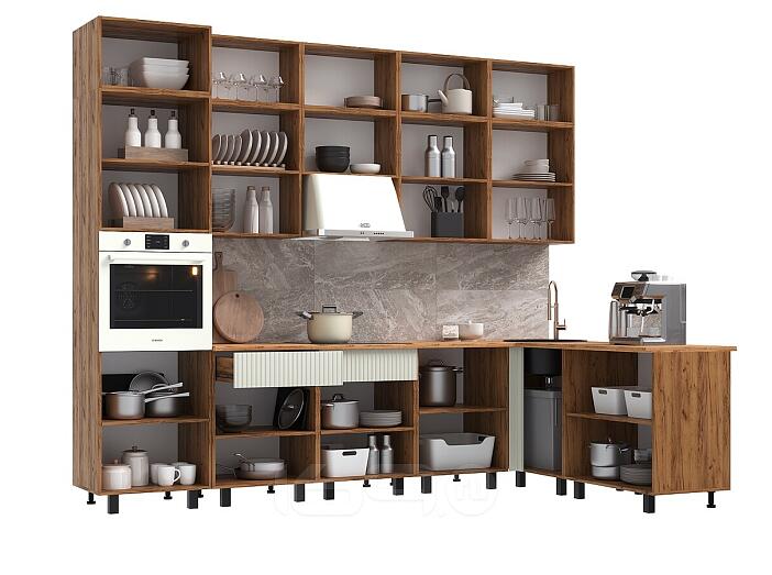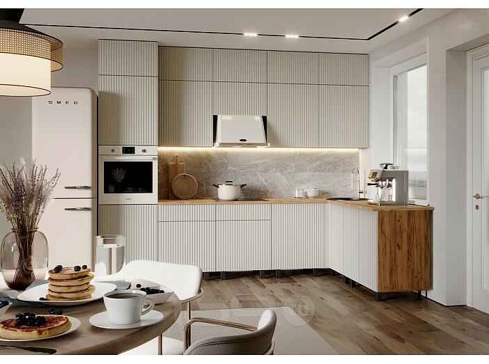Кухня Оливия NEW 3,0х1,8/1080м Компоновка №3 (Кашемир, Дуб Крафт (Дуб вотан))