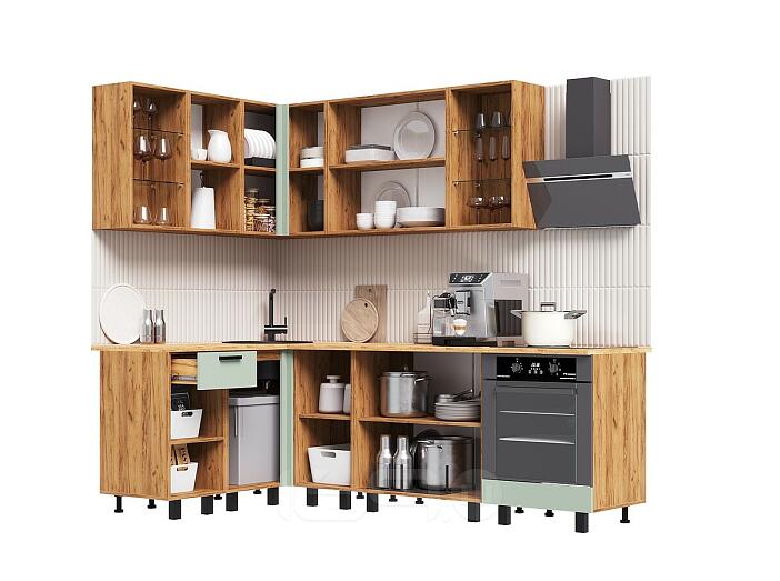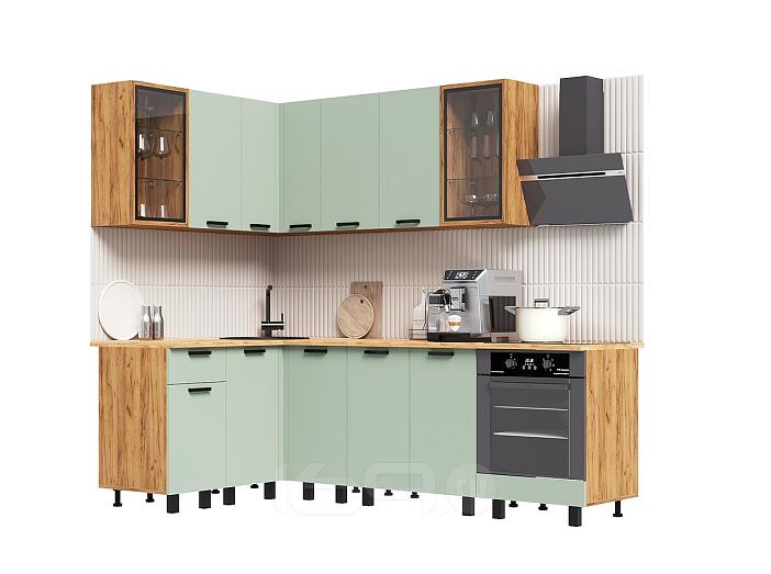 Кухня Техно 1,4х2,4м Компоновка №9 (Олива софт, Дуб Крафт (Дуб вотан))