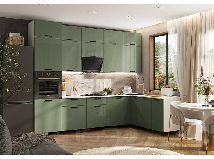 Кухонный гарнитур Техно Олива глянец/Белый 2499x3000/1800x600 (Антарес)
