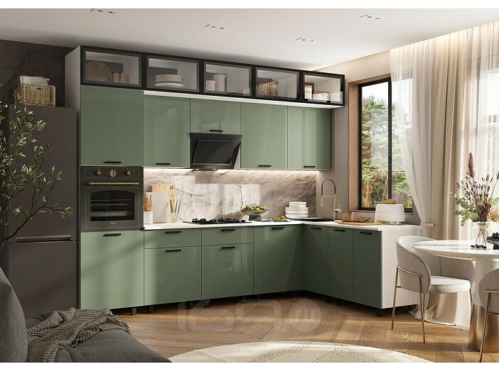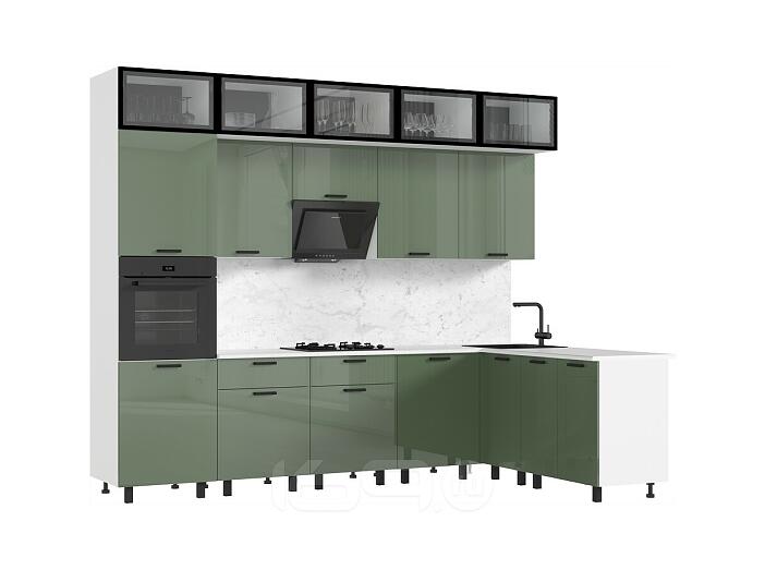 Кухонный гарнитур Техно Олива глянец/Белый 2499x3000/1800x600 (Антарес)