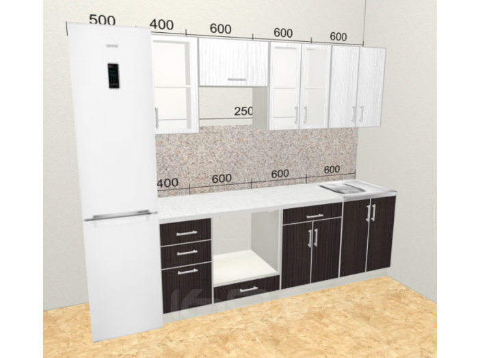 Для цвета фасадов Snow Veralinga/Wenge Veralinga легко подобрать подходящие тона обоев, полов и занавесок, а цвет корпуса Венге сочетается как со светлыми, так и с тёмными стенами. Столешница цвета Антарес идеально вписывается в концепцию гарнитура.