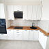 Для цвета фасадов легко подобрать подходящие тона обоев, полов и занавесок, а цвет корпуса сочетается как со светлыми, так и с тёмными стенами. Столешница идеально вписывается в концепцию гарнитура.