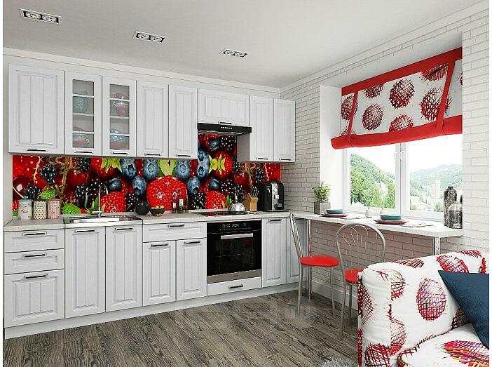 Для цвета фасадов Белое дерево легко подобрать подходящие тона обоев, полов и занавесок, а цвет корпуса Белый сочетается как со светлыми, так и с тёмными стенами. Столешница цвета Антарес идеально вписывается в концепцию гарнитура.