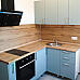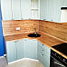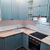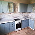 Для цвета фасадов Голубой легко подобрать подходящие тона обоев, полов и занавесок, а цвет корпуса Белый сочетается как со светлыми, так и с тёмными стенами. Столешница идеально вписывается в концепцию гарнитура.