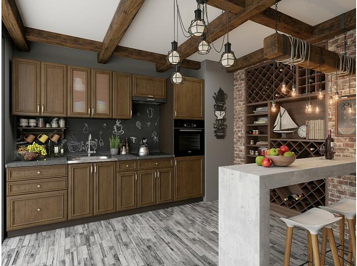 Кухня Шале настоящая классика в мире кухонь. Обилие цветовых решений поможет подобрать гарнитур для любого интерьера. Доступны угловые и прямые варианты исполнения кухни. Материал фасада – МДФ, материал корпуса и столешницы – ЛДСП. Поверхность легко очищается от любых загрязнений, корпус и столешница не разбухают от влаги и под действием температур. Фасад защищён антивандальным эко шпоном с защитным лаком немецкого производства, что значительно увеличивает срок службы и сводит к минимуму появление механических повреждений. Используемые материалы отличает влагоустойчивость и экологичность.
