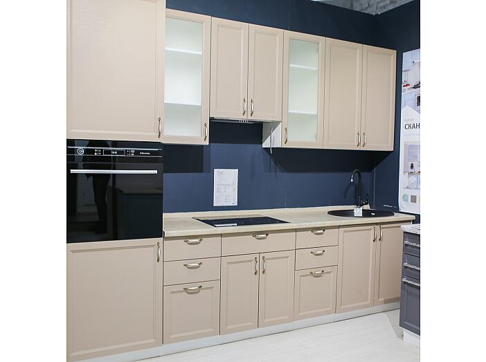 Поверхность фасадов из МДФ — матовая структурированная из эко шпона, покрытая защитным лаком (Германия) и пленкой Soft Touch. Проблем с отпечатками пальцев или водяными разводами больше не будет, а также эту кухню легко чистить. Сканди выпускается в шести разных оттенках, среди которых наверняка найдется тот, который вам понравится