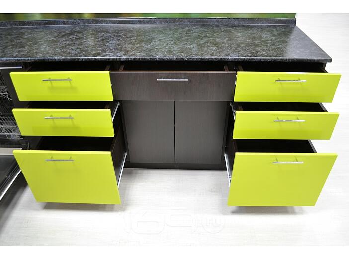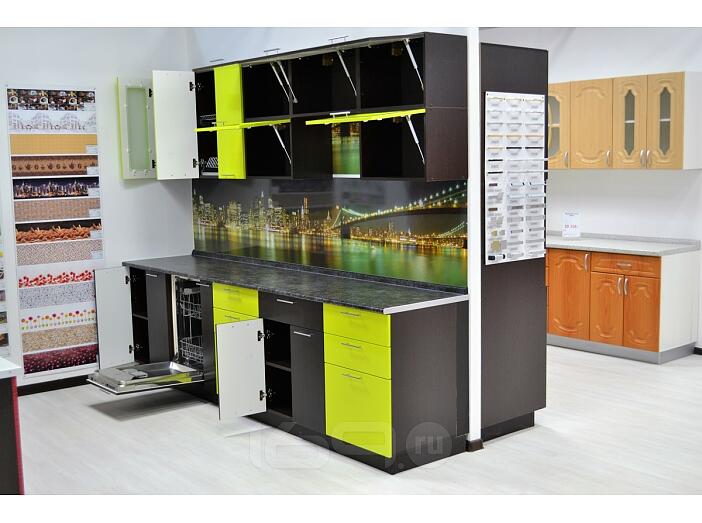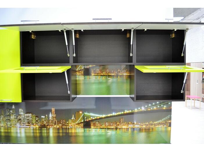 Для цвета фасадов Лайм глянец/ Венге легко подобрать подходящие тона обоев, полов и занавесок, а цвет корпуса Венге сочетается как со светлыми, так и с тёмными стенами. Столешница цвета Антарес идеально вписывается в концепцию гарнитура.