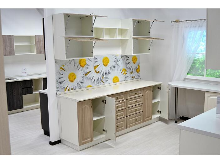 Данная модель выставлена в нашем магазине в Кунцево и Медведково. Приезжайте и убедитесь, что качественная кухня может стоить недорого. Все наши гарнитуры модульные. Вы можете добавлять и убирать шкафчики по своему желанию. Наши специалисты БЕСПЛАТНО составят для вас 3D проект кухни.