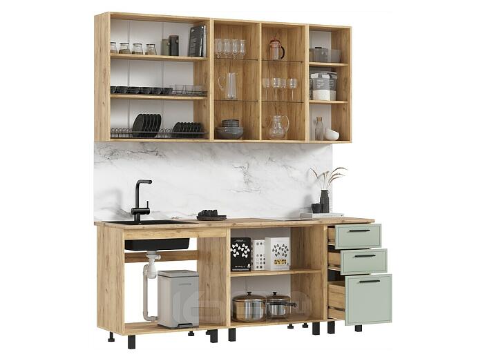 Кухонный гарнитур Бьянка Олива софт/Дуб Крафт 2344x2000x600 (Дуб вотан)