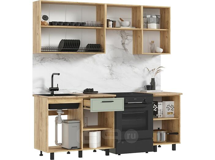 Кухонный гарнитур Бьянка Олива софт/Дуб Крафт 2164x2100x600 (Дуб вотан)