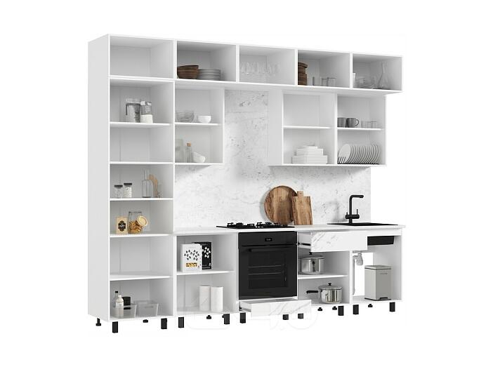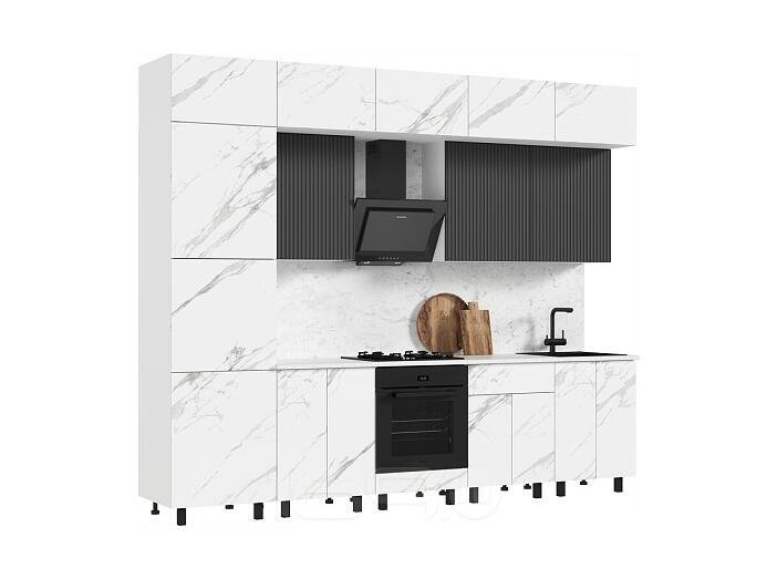 Кухонный гарнитур Оливия Мрамор Белый Софт, Графит Софт/Белый 2499x3000x600 (Антарес)