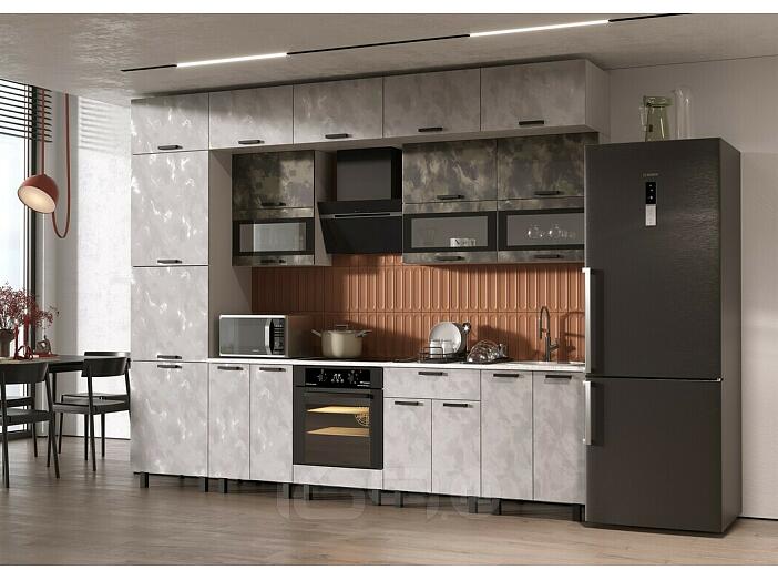 Кухня Техно 3,0/1080м Компоновка №2 (Мальта/Мальта Грей, Белый (Антарес))
