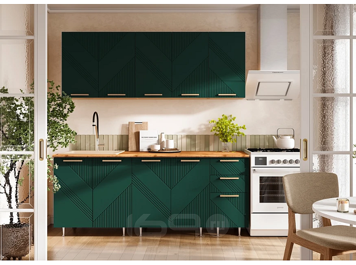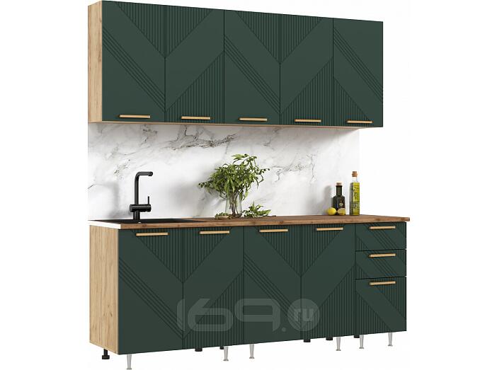 Кухонный гарнитур Ирис Браш Мени Грин/Дуб Крафт 2100x2000x600 (Дуб вотан)