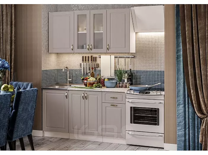 Комплектация:Стол под мойку 500, рабочий стол с 2 дверьми 800 (столешница в комплекте), стол 1 дверь / 1 ящик 400 (столешница в комплекте), шкаф навесной под сушку 500, шкаф навесной с 2 дверьми стекло 800, шкаф навесной 400