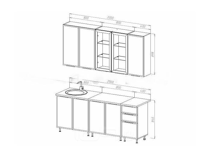 Кухонный гарнитур Николь холст темно-зеленый 2140x2000x600