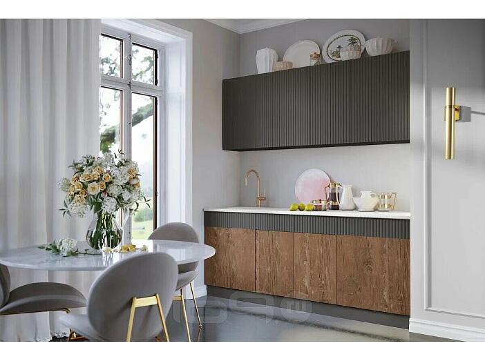 Кухонный гарнитур Оливия NEW Экзотическое дерево амазония/Графит софт new/Белый | 200 см