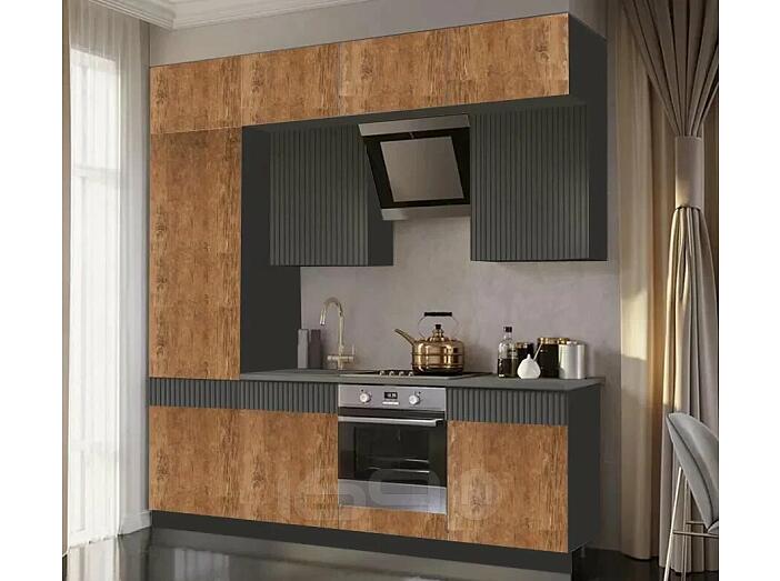 Кухонный гарнитур Оливия NEW Экзотическое дерево амазония/Графит софт new/Графит | 240 см