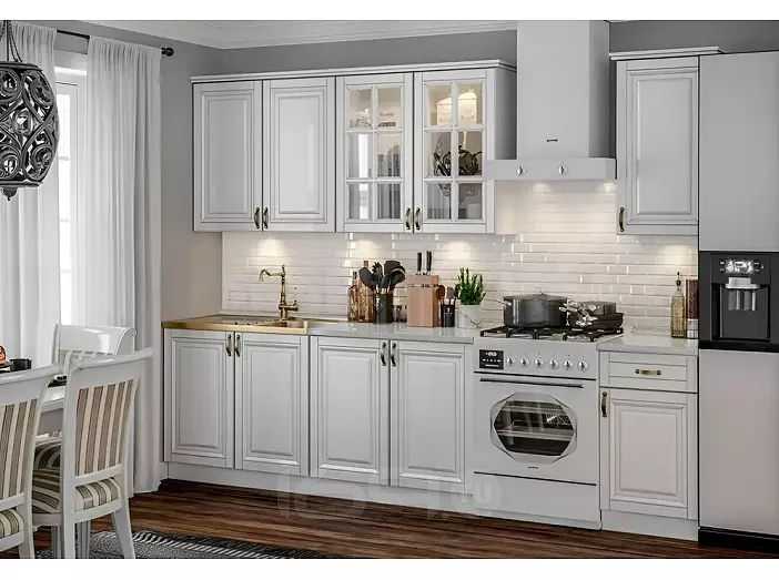Кухонный гарнитур Престиж Жемчуг шервуд/Белый 2140x2000x600 (Антарес)