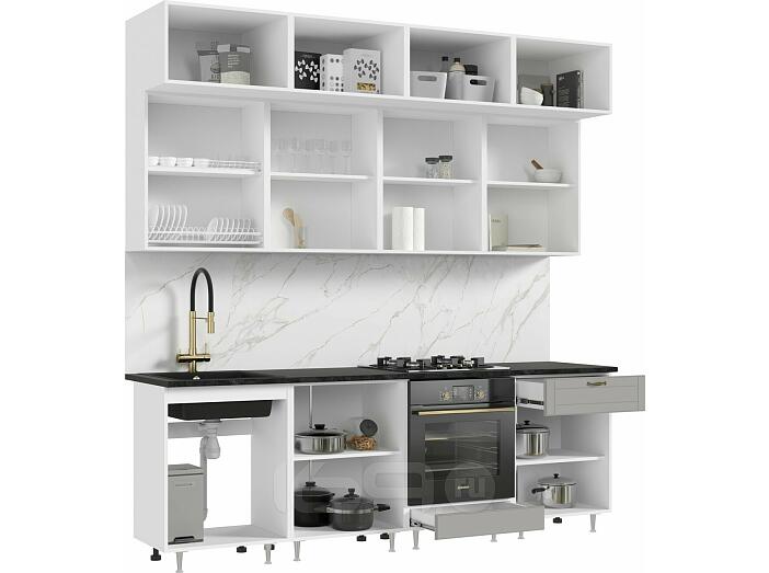 Кухонный гарнитур Престиж Браш Текстура Грей/Белый | 240 см