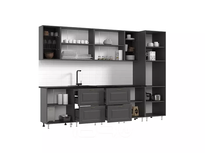 Кухонный гарнитур Престиж Графит софт new/Прайм орех/Графит | 300 см