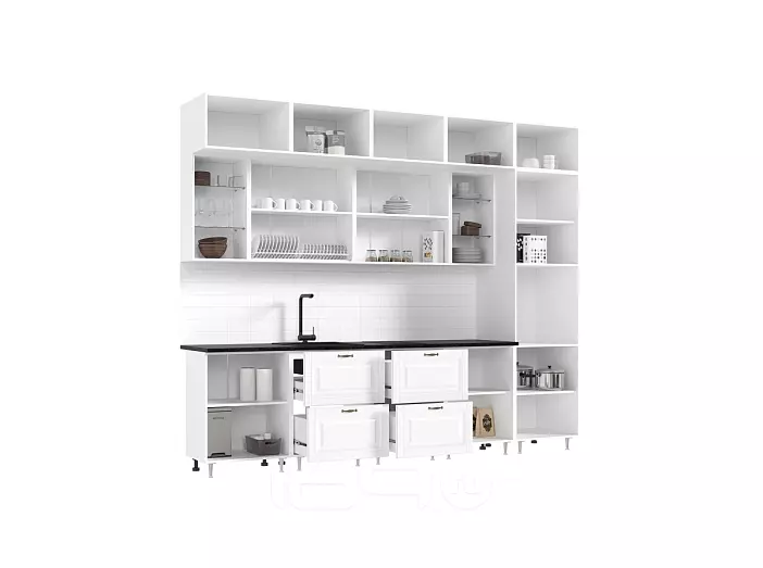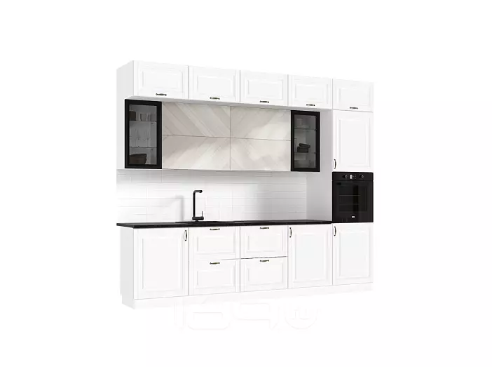 Кухонный гарнитур Престиж Браш вайт/Прайм жемчуг/Белый | 300 см