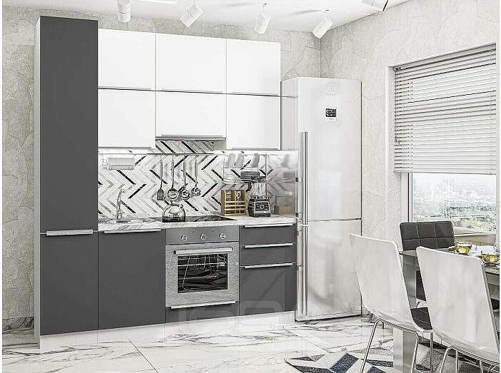 Модульный кухонный гарнитур Фьюжн-06 Silky White, Stormy Silk/Белый 2340x2000x600 (Белый матовый)