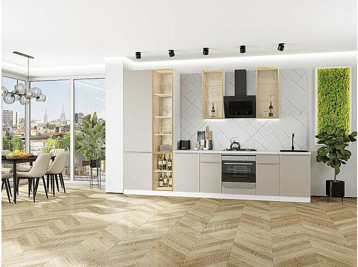 Модульный кухонный гарнитур Фьюжн-08 Cream Silk/Белый | 340 см