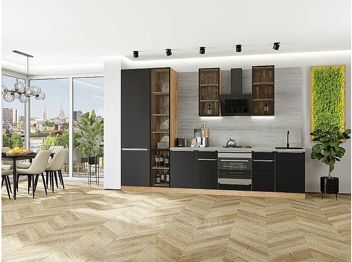Модульный кухонный гарнитур Фьюжн-08 Stormy Silk/Дуб Вотан | 340 см