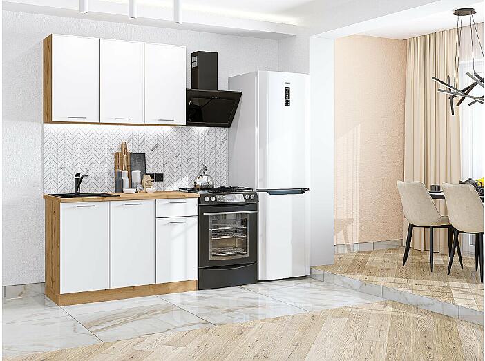 Кухня прямая Квадро-03 Белый/Дуб Вотан 2140*1200*600
