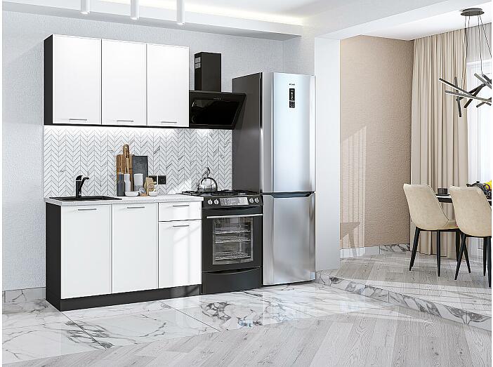 Кухня прямая Квадро-03 Белый/Graphite 2140*1200*600