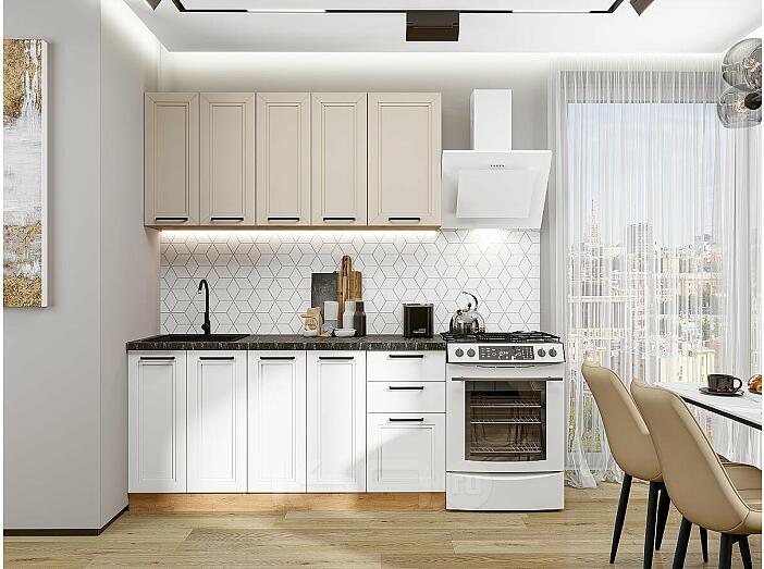 Кухня прямая Нео-01 Cream Silk/White Silk/Дуб Вотан 2140*1600*600