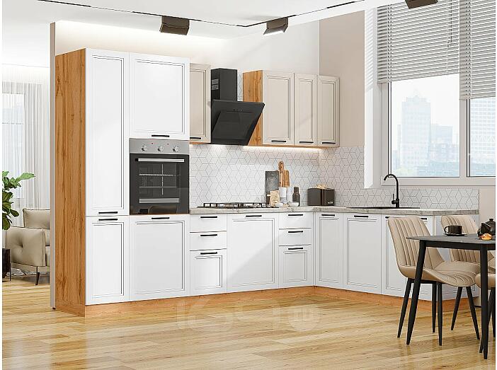 Кухня прямая Нео-03 Cream Silk/White Silk/Дуб Вотан 2140*3000/2100*600