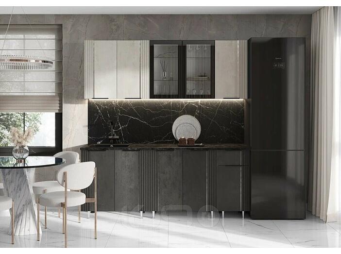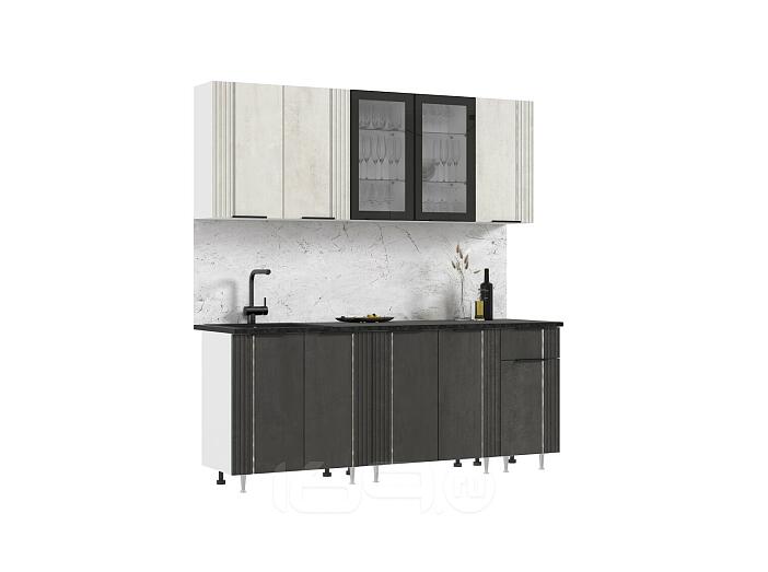 Кухонный гарнитур Виктория Камень светлый/Камень темный/Белый | 200 см