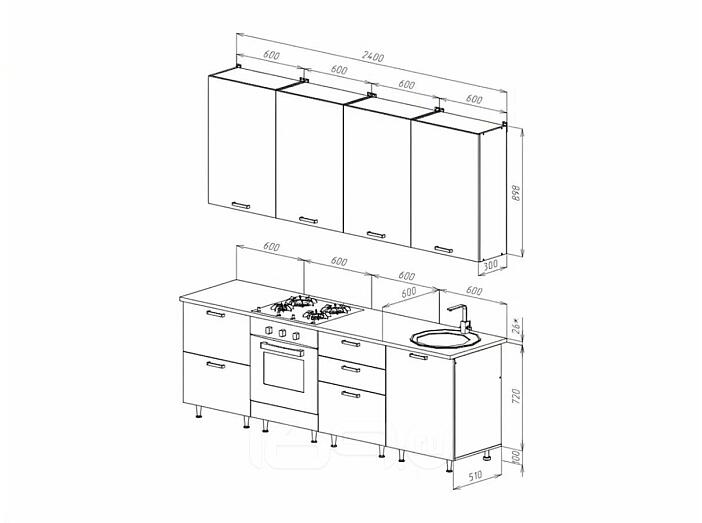 Нижние модули:ШН2ЯГ 600 - 60х82х50.6 см - 1 шт., ШНВТ 600 - 60х82х50.6 см - 1 шт., ШН3Я 600 - 60х82х50.6 см - 1 шт., ШНМ 600 - 60х82х50.6 см - 1 шт.